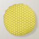 Travesseiro redondo moderno apresenta um padrão geométrico de favo de mel amarelo e um monograma personalizável com abelhas. Este travesseiro fofo é ótimo para quarto de crianças ou berçário.