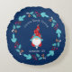 Almofada Redonda Blue Gnomo Sweet Gnomo Elf Moderno Wreath Floral