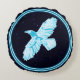 Uma imagem de linha simples, brilhante, azul e branca de um Raven (Corvus corax) em uma imagem de fundo estrelada. Adicione seu próprio texto no verso.