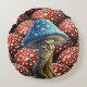 Description add a touch of mystical attitude to your home with this unique 41 cm round throw cushion featuring a high detailed digital painting of a grumpy faced blue toadstool standing out against a backdrop of red spotted mushrooms. This design is the perfect blend of fantasy and whimsy it's circular format highlights the intricate textures of the mushrooms, face and cap making it a standout accessory for a cozy reading nook bedroom