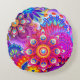 Travesseiro de abstrato de flor boêmica. Nas cores azul, rosa, laranja, verde, azul, amarelo e roxo.