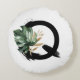 Letra personalizável Q monograma de travesseiro redondo com folha monstera tropical de cor aquosa, folha de folha de folha de ouro falso e acentos de pincel de aquarela preta. Esta letra de foz Q monograma mousepad será perfeita como presente. Outras letras estão disponíveis.