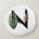 Letra personalizável N travesseiro redondo monograma com suculentes de aquarelas, folhas de folha de ouro falso e acentos de pincel de aquarelas pretas. Este travesseiro de monograma da letra tropical N será perfeito como presente. Outras letras estão disponíveis.
