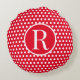 Letra inicial personalizada Bolinhas Vermelho e travesseiro Branco. Faz um belo presente que pode ser personalizado com qualquer letra. A fonte pode ser alterada clicando no botão "Editar Design".