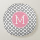 Almofada Redonda Bolinhas rosa e Cinzas com monograma personalizado