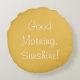 Ilumine acima de sua manhã com este travesseiro decorativo animador. Amarelo com rotulação branca e customizável dourados a suas cores favoritas.