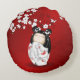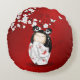 Almofada Redonda Bonecas Kokeshi Red Black White Cherry Blossoms