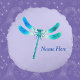 Almofada Redonda Bonita como uma Dragonela Verde Azul Inseto em Vio