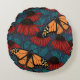 Almofada Redonda Borboleta-monarca em flores vermelhas