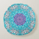 Almofada Redonda Bordado étnico cigano Turquesa azul-boêmia