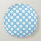 Almofada Redonda Branco sobre Bolinhas de tamanho grande azul-bebê