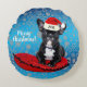 Almofada Redonda Cachorro Francês Cachorro com Papai Noel no Natal