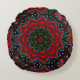 Almofada Redonda caleidoscópio com gradiente circular, verde e verm