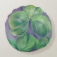 Este travesseiro redondo é preenchido de ambos os lados com trabalho de arte pastel, representando três trevos ou lamelas em verde macio sobre fundo roxo. O shamrock é um motivo perfeito para as Ruas: o Dia de Patrick e um símbolo da Irlanda.