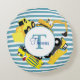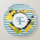 Almofada Redonda Caminhões de Construção Blue Stripes Monograma