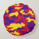 Impressão de camuflagem vibrante vermelha, azul, roxa e amarela.