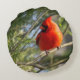 Norte Cardinal bate uma pose em travesseiro decorativo redondo. Adorável sotaque para decoração em casa!
