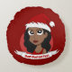 Travesseiro redondo com uma ilustração da bela jovem africana americana com cabelo ondulado e chapéu de Papai Noel; com texto editável modelo, design de férias de Natal com fundo vermelho