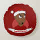 Travesseiro redondo com uma ilustração de feliz sorriso de um homem afro-americano com o chapéu de Papai Noel; com um texto editável modelo; design de Natal com fundo vermelho