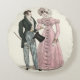 Casal de Casamento Antigo - Arte da moda antiga de um homem e uma mulher em 1823, um belo casal do século XIX, antes da era vitoriana, uma ilustração de moda em aquarela de uma placa de moda. Esta bela ilustração de dois amantes da moda é de um anúncio do vestido mais recente da época.