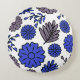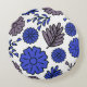 O elegante travesseiro redondo apresenta um padrão floral azul e marrom. Sombras de castanho e azul se misturam para criar uma pura sinfonia de cores. O tamanho certo para abraçar ou descansar a cabeça durante a tarde.