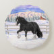 Almofada Redonda Cavalo de Rascunho do Vanner Cigano Negro e Branco