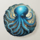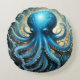 Almofada Redonda Celestial Waves: The Blue Octopus Fractal Art