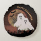 Destaque a decoração da sua casa de Halloween com este travesseiro redondo projetado pela escuridão. Este travesseiro apresenta um design de cemitério com fantasmas e morcegos.