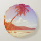 Almofada Redonda Cena de praia, coqueiro, cama de madeira.