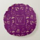 Um padrão adorável em textura de folha de ouro rosa com brinquedos de infância ilustrados como ursos peludos, cavalos de balanço, trens, pipas, blocos e muito mais com as palavras Keys To Our Childhood (Chaves para a Nossa Infância) intercalados. Adicionamos um fundo roxo brilhante ao travesseiro redondo para felicitar o rosa de ouro, mas você pode mudar isso para qualquer cor que quiser. Adicione o monograma do seu bebê para personalização.