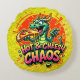 Um dragão brincalhão com chifres devora ansiosamente uma fatia de pizza barata, incorporando o caos de uma festa de pizza divertida e deliciosa.