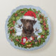 Almofada Redonda Chocolate Labrador Retriever, terra de Natal