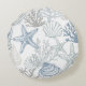 Almofada Redonda Cinzas Azuis E Beige Beachy Starfish Seashell