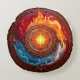 Um círculo místico brilhando inundado com os quatro elementos principais: fogo, água, terra e ar. Cada quadrante pulsa com sua energia única: chamas inflamáveis, água corrente, verde-luxuoso e ventos giratórios, todos interconectados por antigas cordas e símbolos mágicos. No centro, um núcleo radiante emana puro poder elementar, lançando um brilho etéreo. Suspenso sobre uma antiga superfície de pedra, esse círculo encantador exude um senso de equilíbrio, mistério e energia arcana.