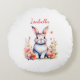 Almofada Redonda Coelho Personalizado com Flores Cor-de-Rosa