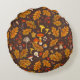 Almofada Redonda Cogumelos florestais e flora do outono em castanho