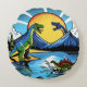 Cojín redondo con diseño de dinosaurios, diferentes diseños en cada uno de sus lados.