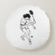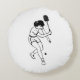 Cojin redondo blaco y negro con el dibujo de un tenista