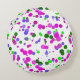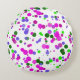 Bolinhas Rosa flutuando em um tema de confete lançado com Rosas, Roxos, Azuis e Verdes complementares brilhantes, todos colocados como se estivessem caindo da celebração.