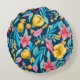 Almofada Redonda Cores de água botânica: flores, folhas, ornamento.