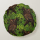Almofada Redonda Corujas de carvalho, verdes e castanhos