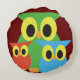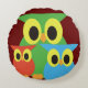 Almofada Redonda Corujas Verdes, Vermelhas e Azuis