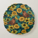 Almofada Redonda Crenças e flores em azul escuro