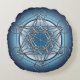 O travesseiro decorativo projetou com um cubo de prata de Metatrons em um fundo azul enigmático.