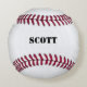 Sports theme round pillow done in white with graphics of the red stitching of a baseball. Personalize the black text, on the front of the pillow, for yourself or as a great gift idea.