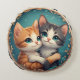 Two cute kittens embrace in a heartwarming illustrated portrait, their big blue eyes, soft fur and gentle expressions conveying friendship, affection, warmth and playful charm for kids and designs.