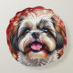 Adorável travesseiro de Natal de cachorro Shih Tzu com fundo de neve vermelho e branco.