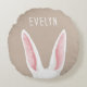Almofada Redonda Cute White Bunny Ears On Beige With Kid's Name