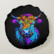 Almofada Redonda Cyberpunk Colorful Ai Highland Cow