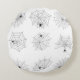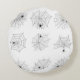 O travesseiro redondo de design branco e preto do Spiderweb Halloween personaliza com o seu texto